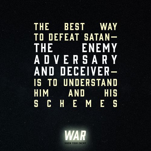 I am so thankful that Matt is leading this study on Satan and his schemes. My hope and prayer for all of you is that you use the study to prepare yourself for combat so that you can overcome the schemes of satan. The best way to defeat your enemy, adversary, and deceiver is to know your enemy and his schemes. I wish I had known about them some 30 years ago.